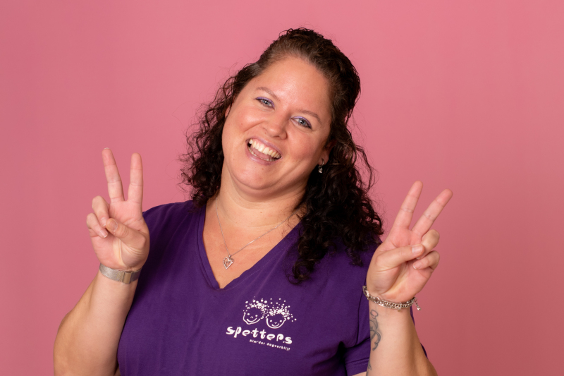 Ik ben in 2007 afgestudeerd en ben toen ook meteen bij Spetters begonnen met werken. Ik ben begonnen als invalkracht en werk nu vast bij de Brakkies op dinsdag, donderdag en vrijdag. Ik woon zelf ook in Gilze samen met mijn man Maikel en dochter Jay-Dee & Yara. Omdat ik zelf in Gilze woon kom je ook geregeld kinderen van Spetters tegen en dat vind ik gezellig. Soms worden ze verlegen en zo springen ze tegen je op hihi.